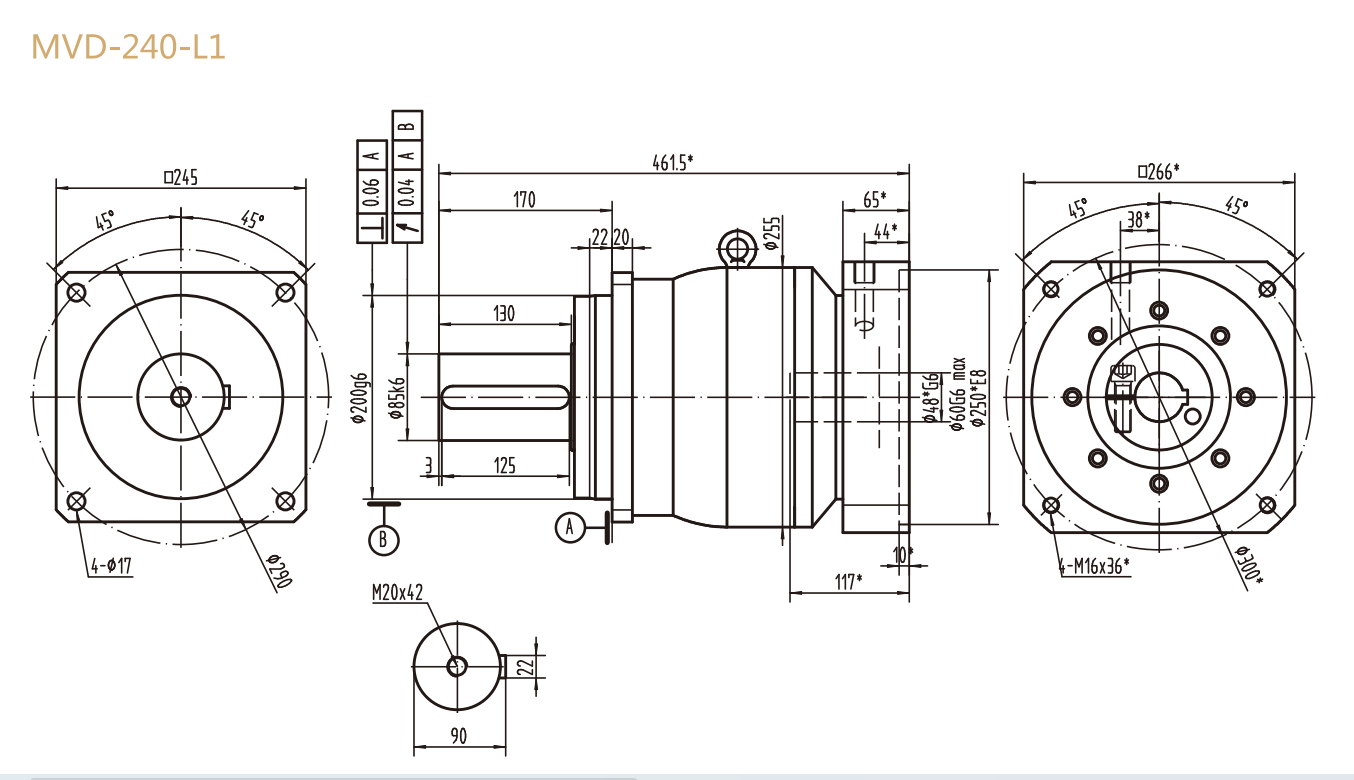 MVD-240-L1系列精密行星減速器型號尺寸與圖紙