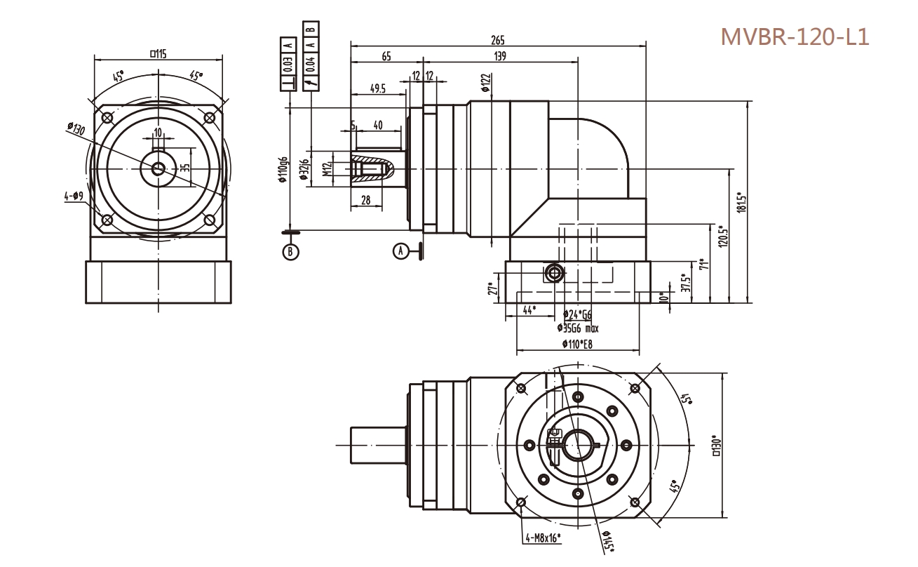 MVBR-120-L1系列精密行星減速器型號尺寸與圖紙